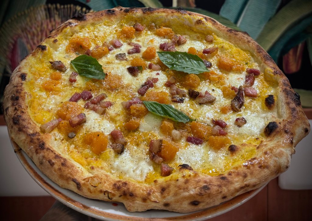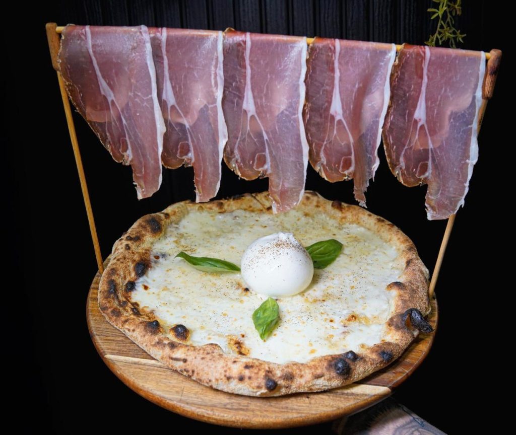 Fiordilatte affumicato di Agerola, pancetta di Zibello, cacioricotta di capra cilentana, pepe nero Wiberg, olio evo, basilico con cornicione ripieno di ricotta di bufala 12