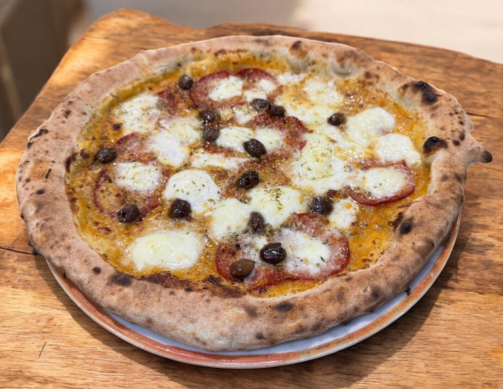 Mozzarella di bufala “Argiva”, pomodoro, salame piccante di Bracigliano, Grana Padano, olive Leccino denocciolate, olio evo, origano, all’uscita ‘nduja di Spilinga 11