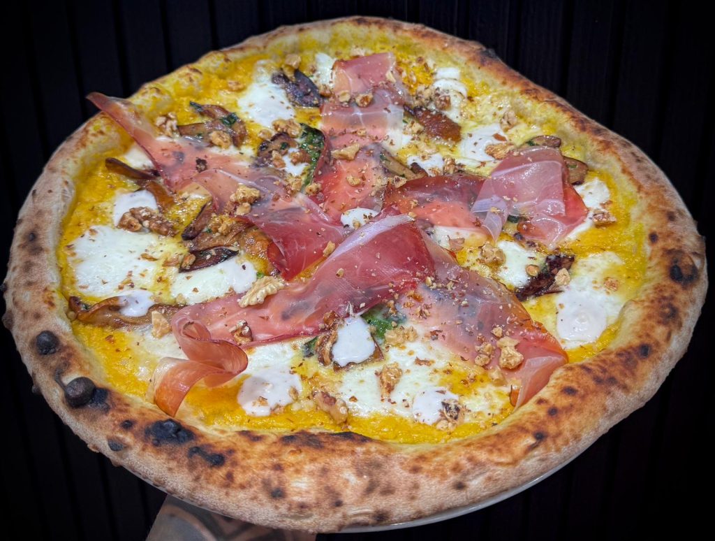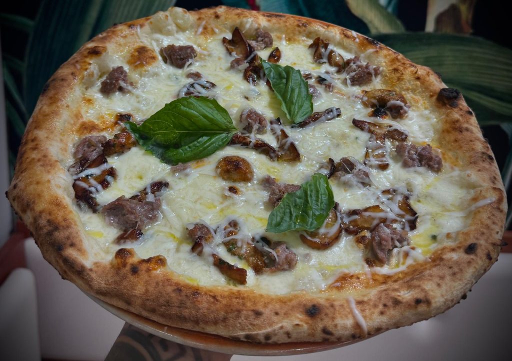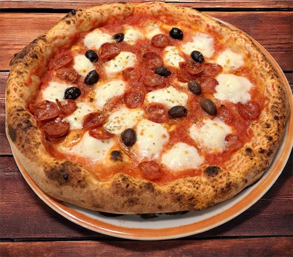 Pomodoro “Così Com’è”, fiordilatte di Agerola, salame piccante di Bracigliano, funghi Champignon, prosciutto arrosto alta qualità “Diamante Nero”, olio evo 9,5
